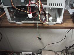 そして、これまたその6ですっかりと忘れられていた電源スイッチ。当たり前だけど、この筐体にそのままとりつけられるはずがない。で、「とりあえず動作確認だし」ということで、線だけマザボにつないで、スイッチはむき出しのまま。わはははは。大分壊れてるな。私が。