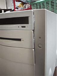 CD-ROMドライブやFDドライブ前面のフタ。スロットのところにちゃんと穴が空いているんですが、何の気なしに買ってきたCD-ROMドライブやFDドライブとその穴がぴったり合うはずもない。